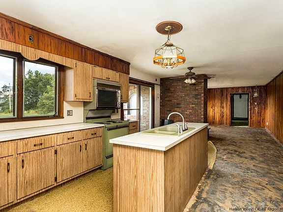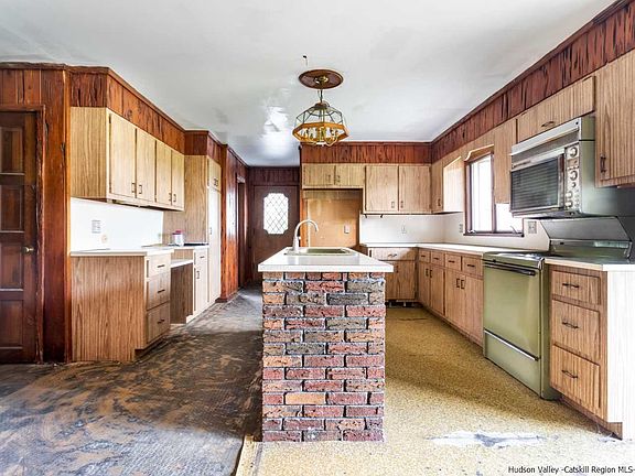 A gem in the making! This brick mid-century 3 bedroom/2.5 bath house was built in 1967 by the original owner (father of the seller). There are many original details still remain with the home such as unique tiles, cool wallpaper, cypress wood paneling and original light fixtures. There are views of the Hudson River and Kingston Bridge from the backyard. There is a base for a pizza oven and hot tub in the backyard. Both the home and the barn recently had new roofs put on. The current owner removed old carpets so new floors can be installed by the next owner. Don't miss the opportunity to make this your own! The property includes a Dutch barn, there are only a few hundred of these still intact. This can be used as a 3 bay garage or transformed into something that fits your lifestyle. The property was originally owned by Victor E. Livingston whose ancestry dates back to Robert R. Livingston (a signer of the Declaration of Independence and Founding Father of the United States) the land formerly used by the Livingston family for farming and fruit growing. The home adjacent to Ulster County park with picnic area and boat launch The location is ideal, a quick drive to Uptown Kingston, Woodstock, Saugerties and many of Ulster and Dutchess County's best attractions, 15 minutes to Rhinecliff Amtrak station and NYS Thruway.
