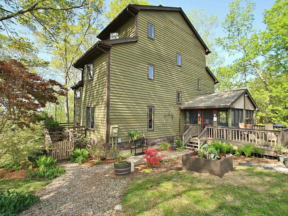 PASSIVE SOLAR contemporary, on 12 PRIVATE ACRES, w/windows in all directions to enjoy the VIEWS! Master bedroom suite has a ''TREEHOUSE FEEL''! Open floor plan, fantastic design. Rec room, wet bar, guest suite & storage in walk-out basement. Deck and screened porch, 2-stall/tack room/wash area stable, fenced pasture, & garden shed. HORSE/PET FRIENDLY! Perfect year round or vacations near Lexington!