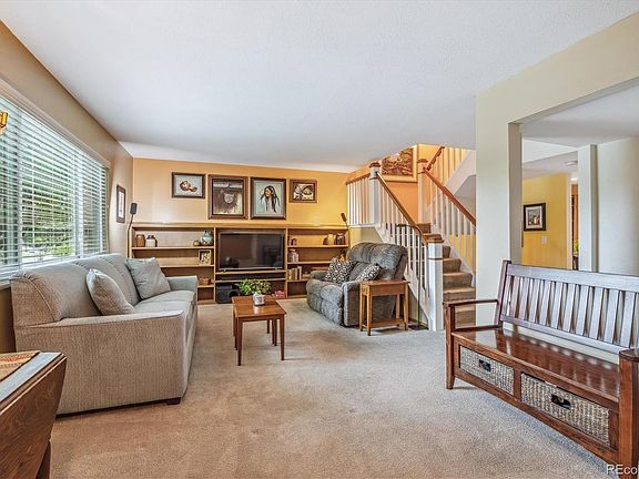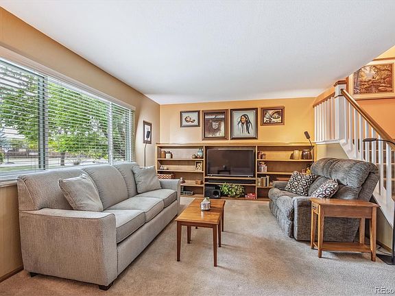 We are proud to present this lovely 2-Story townhome tucked in the most serene beautiful setting! This special 1/2 duplex style townhome boasts ample green space and lush trees in an amazingly convenient location! Located in the well-maintained Linvale neighborhood in Central Lakewood. Large, unique end unit offers open floorplan with carpet and tile floors in immaculately clean condition. Small foyer entrance into living room pouring with natural light & beautiful built in entertainment center. Large dining + kitchen features island with breakfast bar, stunning new cabinets with slab granite counters, stainless steel appliances, wall pantry, gas cooktop, micro/oven combo wall unit & sunny herb bay window. Sliding glass door from informal dining with natural light to covered rear patio! Special private setting with private greenbelt - great for pets, kids or entertaining. Main level laundry with cabinets & nice appliances included. Upper level private primary bedroom, winter views of mountains from eye-catching front balcony, plush carpet, ceiling fan & light, walk-in closet & flowing into a private ensuite bathroom. Tile flooring, tub/shower & updated nicely. 2 additional very generous spare bedrooms, large closets, with ceiling fans, and one offering a quaint private rear balcony. Updated hall full bathroom with tub/shower! Basement is partially finished with ample storage, flex family room/home gym and great for kids, crafts, hobbies or entertaining. Stunning curb appeal + practical 2-car attached garage and ample driveway. HOA keeps immaculate grounds, low maintenance living and amazing setting just steps to O'Kane Park & minutes to all of life's amenities! This home has been lived in easy by loving owners! Live close to shopping, dining, schools, trails & easy access to Denver/Mountains. Community is very kind and pleasant! Don't miss this amazing home in an amazing community! You won't be disappointed in this setting and feel-like a single family home layout.