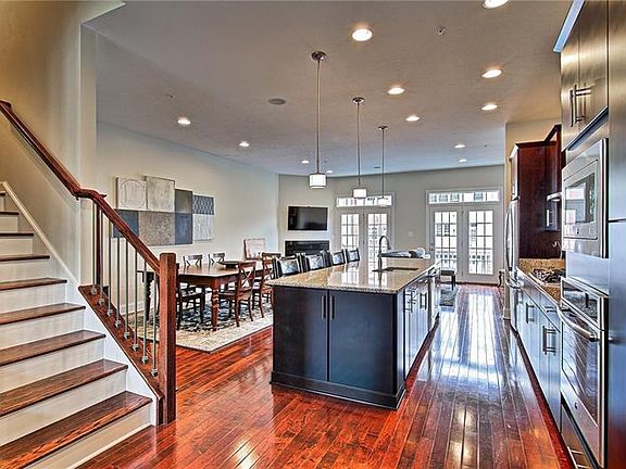 John Jacob Astor Town Home w/Single Family Home living! MUST SEE options for flex spaces: FIRST FLOOR BEDROOM w/ensuite ~ Upper level options for entertaining, a 5th bedroom, or amazing teen suite! OPEN main floor w/1100 sq ft ~ hardwood, 10âEUR(tm) ceilings/GOURMET KITCHEN w/granite/stainless appliances/gas cooktop w/exhaust/built-in wall oven & microwave/upgraded hardware/island w/pendant lighting & large, adjacent dining area. FAMILY ROOM w/custom fireplace/dbl French glass doors w/transom to the first of 2 decks! MASTER w/10âEUR(tm) extension/upgraded bath w/granite dbl bowl vanity/lg walk-in shower/2 closets w/custom built-ins (shoe closet behind mirror) BONUS upper level perfect for entertaining/work outs/guests ~bar, full bath, walk-in closet, FR door to rooftop deck! Finished LL ~ Versatile flex space plus storage & garage. Low Maintenance, High Amenity Lifestyle ~ Sidewalks, Fitness Ctr, Event & Pub Room, Pool, Playground, Lake, 88 Acre Nature Preserve & Trails. SELLERS HAVE BARELY USED!