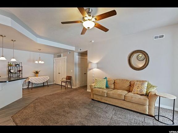 Charming, stylish, and move-in ready! You will absolutely love this main-level home nestled in the heart of Centerville! Clean, open layout, tons of natural light, wonderful mountain views, spacious rooms, master suite, walk-in closet, and ample storage throughout. The beautifully landscaped community is perfect for relaxing and having fun! In addition to landscaping and exterior insurance/maintenance of the building, the HOA covers your water, sewer, garbage expenses, and snow removal. Park/playground areas and swimming pool access are also included. Affordable utility services. You have an exclusively-designated, covered parking space. Plenty of open parking available for you and your guests. Perfect for entertaining! Fantastic location with convenient access to Parrish Lane, I-15, Legacy Parkway, area shopping, and local schools. Buyer to verify all information. Call today to schedule your personal tour!