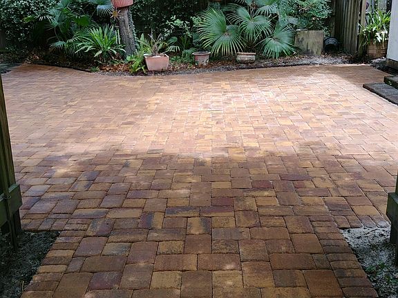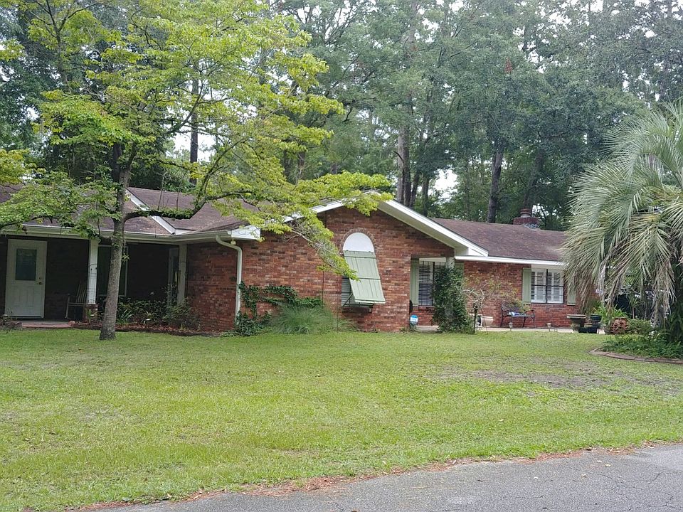 Brick ranch style, three bedrooms, two baths with 2,426 square feet on a .48 acre landscaped corner lot. Inside City of Kingsland - City water and sewer Not in flood zone. No HOA fees. Master en suite with large bonus room that can be used as a nursery, office or exercise room, etc. Has a skylight, plantation shutters, 2 large closets, walk-out doors to front porch and back New Orleans-style patio. Separate central heating and A/C. Master bathroom with 2 toilets, separate jetted tub, walk-in tiled shower, double vanity, large linen closet and 2 skylights. 2nd bedroom with walk-out to front porch, ceiling fan, two closets (one set up solely for shoes) and built-in storage. 3rd bedroom with ceiling fan, two closets and plantation shutters. Guest bathroom with tiled walk-in shower, Mexican sink, and glass blocks. Large kitchen with 2 large pantries, island, tile floor and granite counter tops. Dining room with entry closet, crown molding, plantation shutters and tile floor. Large living room with brick fireplace, crown molding, ceiling fan, plantation shutters on windows and sliding door to back New Orleans-style patio. Separate utility room. Screened porch in back with two ceiling fans. New Orleans-style fenced back patio with pavers. Side yard with pavers to potting shed/storage shed/she-shed or workshop with ceiling fan, skylight, and stained glass. Double carport with storage and attic entrance with pull-down stairs. Front covered porch. Deep well for watering landscape. Tankless water heater.