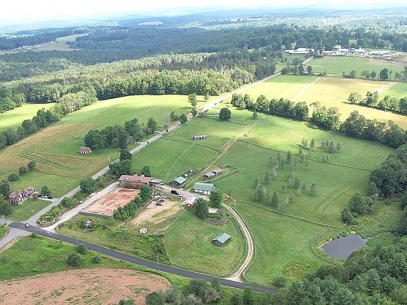 A unique and magnificent opportunity is now available for its next chapter. This 19+ acre property is perfectly positioned for many ventures on a rural corner in the heart of Bethel, NY. The desirable location is agriculturally zoned and was formerly a state-of the art equestrian facility, allowing endless possibilities with numerous outbuildings, pastures and infrastructure. Main house is a duplex with beautifully appointed interiors that can easily be converted into a single family or a multi-generational living space since they are conveniently connected. Each unit offers 3 BR's, open floor plan, washer and dryer. The larger apartment offers 2 full baths, a large entry and a covered porch overlooking the beautiful meadows and pond. Manufactured ranch home is a plus and perfect for rental or caretaker quarters. Main barn houses 10 stalls, tack room, feed room, wash bay (hot and cold water), restroom and utility room for residence above. Three additional Amish-built barns offer 8 more stalls and are scattered throughout the open acres of property. Picturesque setting with pond, stream and trails through the wooded areas is simply magical. Plenty of storage with several other outbuildings including a 4-bay garage and barn with mini-stalls as well as a run-in shed and two open arenas. Property fronts on two roads offering development potential as well as high visibility. Minutes from Bethel Woods Center for the Arts (1969 Woodstock site), Sullivan Catskills lakes, farms, hiking, skiing, craft breweries, distilleries, shops, casino, water park, and more. Only 90 miles to NYC! This is a canvas for a dream lifestyle and business in a historically rich region.