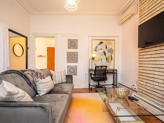 Experience this sun-filled, second-floor bijou 1-bedroom located in the heart of Brookline Village. This chic apartment offers high ceilings, large bay windows, hardwood floors, exposed brick, and in-unit laundry. The bedroom features a full-sized bed with French doors, while the living room is furnished with a sleeper sofa, dining table, and desk. Step outside to numerous restaurants, shops, and cafes. The Brookline Village D line stop is a 3-minute walk, with bus lines providing direct access to Longwood Medical hospitals just across the street. This chic 1-bedroom offers high ceilings, large bay windows, hardwood floors, exposed brick, and in-unit laundry. The bedroom features a full-sized bed with French doors, while the living room is furnished with a sleeper sofa, dining table, and desk. Step outside to numerous restaurants, shops, and cafes. The Brookline Village D line stop is a 3-minute walk, with bus lines providing direct access to Longwood Medical hospitals just across the street. This unit is ready to be your next new short-term home. Pets are considered on a case-by-case basis with an additional $150 pet cleaning fee per pet, as the apartment requires special cleaning after your stay. Guests bringing pets will be required to sign a pet contract. Parking is available at $250 per month and must be reserved ahead of time to guarantee a space. Pack n' Play and high-top chair are available upon request for $10 per night. For any stays 28 days and longer, an additional cleaning fee of $100 will be charged. You are right in the center of Brookline Village, a quaint neighborhood in Brookline that feels like a small town. The apartment is surrounded by several restaurants, coffee shops, stores, and more. Rated with a 94 walk score, it's a stone's throw to the D line and multiple bus routes. Less than 1 mile to Longwood Medical hospitals, under two miles to Boston, and a 7-minute walk to Coolidge Corner make this the ideal location. There is a $150 lost key fee. After your reservation has been confirmed, you will receive a contract to review and sign, outlining the basic house rules. Pets are considered on a case-by-case basis. No subletting or unauthorized guests are allowed. Parking is on a first-come, first-serve basis and must be reserved ahead of time to guarantee a space.
