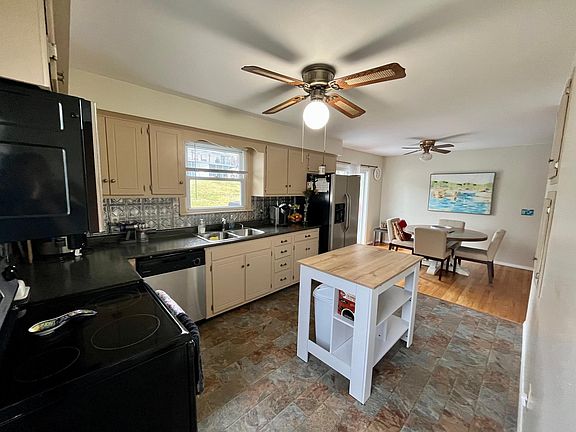 The main level has a living room with water views, a kitchen, a dining room, two good-sized bedrooms, and a bath and a half plus a space for an office, In addition, you have a new primary with an ensuite, a walk-in closet, and a deck with water views.