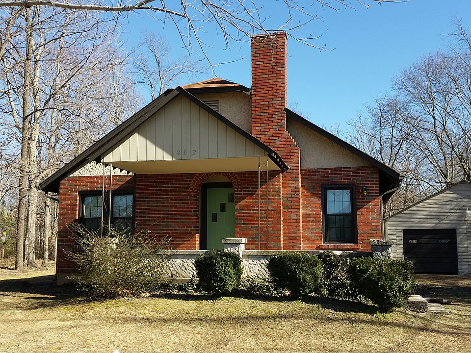 SALE PENDING Delightfully close walk to Capshaw School. Can't beat this great location where you can zip to the store & school fast! This affordable brick home features 3 bedrooms, spacious living room with fireplace, formal dining room, and roomy sunroom. The charm of yesteryear with built in wood cabinetry, cedar lined closets, glass transom overhead doors, and hardwood underneath carpet. 2 car detached garage and unfinished basement for all of your storage needs. All appliances including washer & dryer. Nice level lot that goes street to street. Roof 4 years old. There is a central gas heater that works although the vents have been temporarily disconnected. There is no central air conditioner. All rooms have floor vents. Most electrical and plumbing has been professionally updated within the last 2 years. The dark trimmed windows are new. Transom windows work well. There is a phone nook in the hall that is original to the house. There are two washing machine and dryer hook ups. One is in the basement and the other in a corner of the sunroom. Despite what you may see on Craigslist, this house is not for rent.