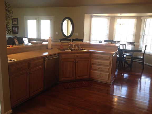 LIKE NEW OPEN FLOOR PLAN Spectacular all brick custom-built walkout ranch with 4 bedrooms and 3 full baths on beautiful 1+ acre lot. Just 1 ½ miles off I-71. **Approx 2900 sq. ft. beautifully finished** From the moment you step through the custom palladium side glass front door into the 1.5 story entry ceramic tiled foyer, you will see quality. The finest upgrades in carpet and paint, built in cabinetry and entertainment center are all tastefully done. The family room has a vaulted ceiling, custom wood entertainment center and atrium doors that open onto the large private deck. A vaulted eat in kitchen with NEW HARDWOOD FLOORS is completely open. A beautiful elevated bar top that seats several is perfect for parties or feeding the family on the go. All custom light maple finished cabinets abound and there is a LARGE pantry. The formal dining room has an 11 foot ceiling and 3 section palladium window. Also, off the kitchen is a first floor laundry/mudroom and sink going out to the 2.5 car garage. Two bedrooms and full bath are on the north end of the home. The private master is located on the south end of the home and has a vaulted setting/tv room and large private bedroom with 2 walk in closets. The master bath has a step in whirlpool tub, separate walk in shower, double bowl vanity and custom cabinets. The finished walkout lower level includes a media room (currently used as the playroom), an office (currently used as a game room), spacious 4th bedroom, full bath, and large elongated family room. There is a doorway to a lower level 35 ft. long garage/workshop. UPDATES WITHIN THE LAST 2 YEARS INCLUDE: CERAMIC TILE IN FOYER AND MAIN BATHROOM, HARDWOOD THROUGHOUT LAUNDRY ROOM AND KITCHEN, WAINSCOT IN DINING ROOM, PAVED DRIVEWAY, BEAUTIFUL RETAINING WALL WITH STEPS LEADING TO BACKYARD. All this on a private-cul-de-sac location wooded lot for $262,500..BETTER HURRY CAUSE THIS WILL NOT LAST!!