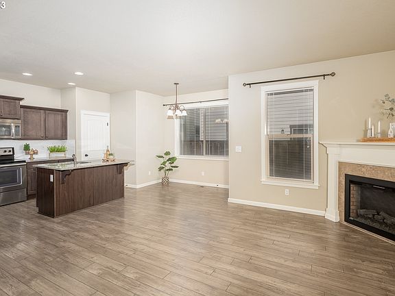 This North-facing 3 bd, 2.5 ba Craftsman home features tasteful finishes, fireplace, an open floor plan & beautiful flooring throughout the main level . The open kitchen offers granite counters, island w/ eating bar, SS appliances & pantry. French doors lead to vaulted Primary, en-suite w/ walk-in shower, dual sinks & walk-in closet. Low maintenance yard w/ patio, plants & sprinklers. Convenient to Pacific University, parks, shops & restaurants and HWY 47. All appliances included & low HOA!
