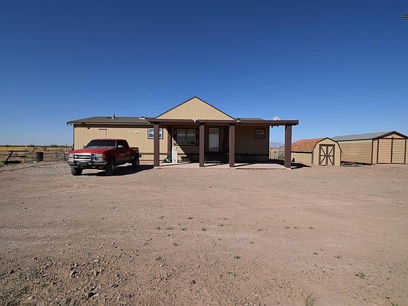 3 Bedroom 2 Bath 2004 Mfg home on 3 Acres. This beautiful home features 1,568 Sq. Ft, spacious eat in kitchen with center island, lots of cabinets and pantry. Large living room with fireplace, vaulted ceilings, sky lights, dining area, refrigerated Air, carpet flooring in bedrooms, good size master bedroom, soaking tub, double sinks and walking shower and linen closet in master bath, utility room, sheds, plenty of room for RV Parking, well and septic. Great Property, Manufactured Home is classified as Real Property. A must see! Call Eva Luna, Broker 575 494.0969 to schedule your private viewing!