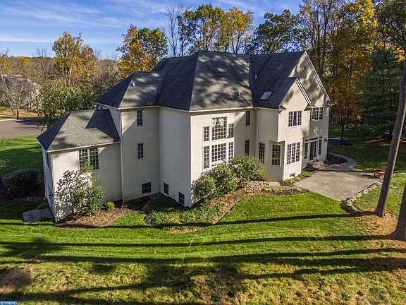 Stately & Elegant! In an enclave of 8 executive custom homes built by Richard Zaveta, premier local builder, sits this home on a wooded lot above a quiet cul-de-sac. Quality & custom detailing abound from the moment you step in. The breathtaking two story foyer with marble floors allows a view of the raised living room with a soaring wall of windows, open dining room & main stairs set off to the side. To the right is the study with beautiful custom built-ins. Light & bright conservatory with terra cotta tiled floor has vaulted ceiling. Lovely & functional kitchen overlooks the family room which is the heart of the home for family and entertainment. Granite counters, center-island w/ vegetable prep sink, loads of cabinetry, desirable induction cooktop, newer double ovens, Sub Zero fridge and more make this kitchen a chef's dream! Breakfast bar with seating for four adjoining the breakfast room offers plenty of space for family and friends to gather. The chef need never feel separated from the activity as the family room with wood burning fireplace is just one step down from the kitchen. More windows span the back wall including French doors which exit to the paver patio to enjoy peaceful summer evenings. Accessed by rear stairs, five bedrooms on the second floor offer space to retreat. Grand & spacious master suite has tray ceiling, large walk-in closet, sitting area & opulent master bathroom. Second bedroom has adjoining bath which can also be accessed by bedrooms three & four which are tucked around the hallway. Fifth bedroom in the far wing is en-suite with full bath, the perfect guest suite! Find more living space in the daylight walk-out lower level with entertainment area, additional bedroom and full bath. Great for family & friends to relax and watch the game or home for the au pair or live-in relative. Recently re-finished on-site hardwood floors throughout first floor and brand new carpeting throughout second floor & lower level. This gracious home is close to both Doylestown & New Hope for shopping and dining and within walking distance to both middle and high schools. This is an opportunity not to be missed!