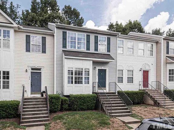 Gorgeous condo that lives like a townhouse! 5 bedrooms, 3 with en-suite bathrooms .Open floor plan on living floor has 1/2 bath. Oversized Kit.Bright and Airy.Back deck w/wooded private views. Upstairs master suite is a luxury retreat w/walk in closet and separate shower. Ground floor master has a huge walk in closet and sliding door exit/entry to private fenced patio area. This bedroom’s ensuite bathroom features a huge shower and double sink vanity. Second generous bedroom with ensuite is also on the ground floor, as is the well designed and efficient laundry area.**NEW HVAC **, new floors throughout, hardwired ethernet connections available in all bedrooms and living areas Ample parking. Side walks lead you to the Camden Crossing community pool.Walk to grocery!Convenient to I40. Mins to City center, Dix Park and Centennial Campus.