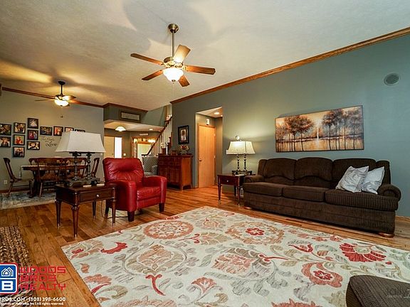Wonderful living for a couple or family. Main floor living includes living room with gas log fireplace & stack stone wall, primary bdrm & bath, 2nd bdrm & bath, & utility room. Open concept kitchen. Dining & living room with great wood floors. 2nd level features a 2nd primary living suite with bath. Full basement with family room, bar, den, 2 bdrms, & bath. Large deck & 2 car attached garage.