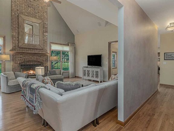 IMPECCABLE CUSTOM 5 bed, 3.5 bath,1.5 STORY is perfect for your family! Located in desirable PINE HILLS SUBDIVISION. The beautifully remodeled kitchen is equipped with GRANITE and all STAINLESS STEEL appliances! All HARDWOOD FLOORING on first floor. The main floor bedroom is overly spacious. Convenient OFFICE/DEN on main level. The GRAND great room is PROFESSIONALLY DECORATED with a fireplace as well. This outstanding basement is perfect for your next get-together! It includes a wide array of options like a custom shower/bath, radiant heat, wet bar with a dishwasher and wine cooler! Possible 6th bedroom! The 3 car tandem garage is perfectly equipped with radiant HEAT also! PRIVATE backyard is perfect for entertaining. Book your showing today!