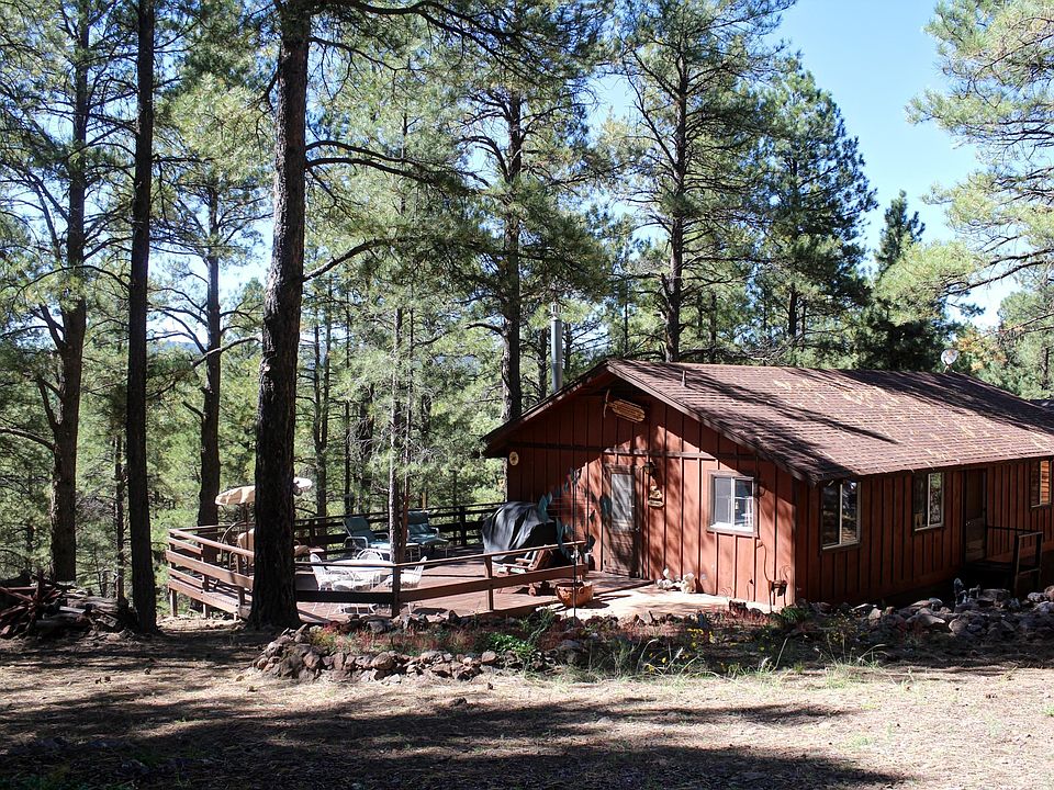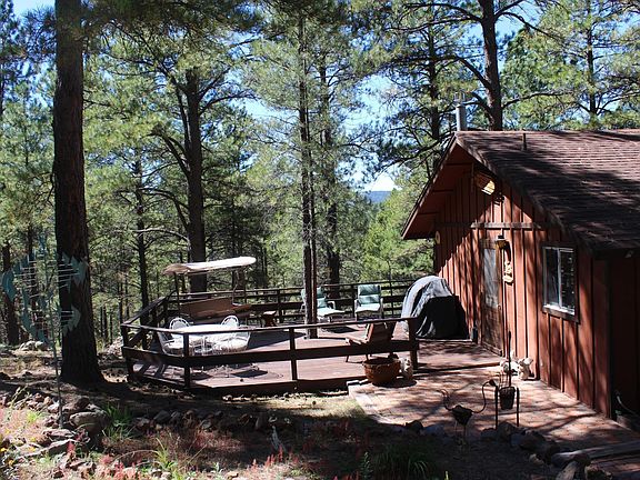 Amazing Views! Come see the views from this cabin on a double lot. Seasonal dream or year round. Home also has a separate approximately 400 sq. ft. 1 bedroom, 1 bath living quarters that is a perfect guest house or apartment for the college student. Cabin feel with T&G walls, vaulted ceiling, malpais hearth and a great room looking out over the canyon! Relax on the large open deck or the covered deck and take in the view. Lots have been combined but could be re-split or build a garage on it! Owner is a licensed Realtor in Arizona.
