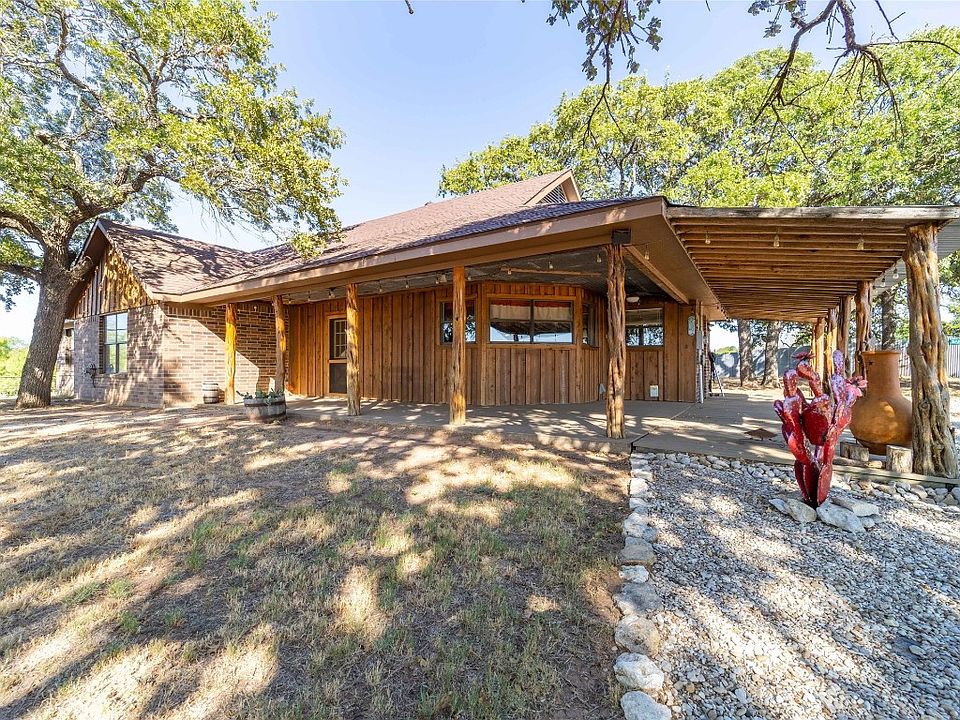 Bring your horses! Country living with close access to the metroplex. This quaint three bedroom, two bath, rustic, ranch house on 6 acres is so inviting, tucked under some beautiful hardwoods. Exterior features cedar posts with expansive covered porches and is beautifully landscaped. This home features an open concept, spacious living area with a beautiful rock, wood burning fireplace. Master bedroom has massive closet space. Property has a pipe-fenced, covered 30x50 shed for your animals or farm equipment. Property is fenced on three sides. new survey. Convex box included.