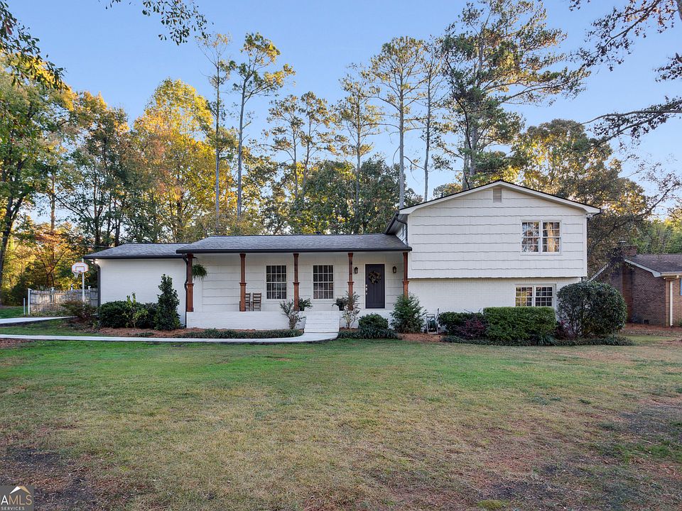 Stunning drive up appeal with updated exterior, new driveway, new sidewalk and beautiful landscaping will make you stop and stare at this beautiful home. The large covered front porch leads to an inviting foyer, updated lighting, large living area to left of entry is being used as a media room and engineered hardwoods are throughout this level. Light filled kitchen has white cabinets, granite counter tops and stainless steel stove and dishwasher. The kitchen has views to dining room, breakfast room and family room with beautiful brick wall and fireplace. The family room has a double door that leads to a covered outdoor patio and a beautiful view of the large level backyard. Directly off the family room is the fourth bedroom that could be office, playroom or a quest room. A huge laundry/mud room with built in cabinets and storage has endless possibilities for your personal needs. The primary bedroom is large with a walk in closet and has it's own private bathroom with double sink area. Each of the secondary bedrooms is generous in size with double closets. The upstairs hall bath has been updated. Linen closets, coat closets and storage is abundant in this home. This 4 bedroom, 2 full baths and half bath floor plan offers many flexible living options. Roof was replaced in 2020. The outdoor shed and utility storage cabinet remain with home for storage and convenience. Excellent schools, beautiful lot, no HOA and convenient location to shopping, restaurants, healthcare and highways make this an easy choice for your next home. Interior photos will be posted on Wednesday, November 15th.