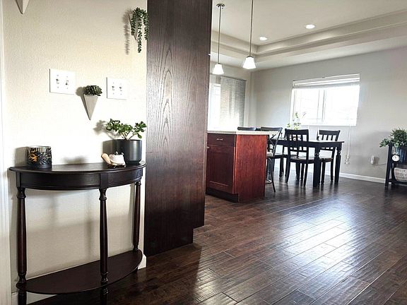 Three bedrooms, three baths, 3 car attached garage - What else can you ask for! Check out this split foyer with extra stylish details that are part of this home design! This open concept main floor features a tray ceiling in the living area that gives the space character and elegance. The kitchen has stainless-steel appliances, a center island as well as plenty of space for a dining table. The sliding doors introduce you to the 10 x 12 maintenance free deck and fenced yard. Notice the beautiful dark vinyl flooring that is featured throughout the main level and leads into the spacious primary suite. Two closets are in the hallway - one is used for a pantry. The 2nd bedroom is at the end of the hall and a full bath is located right off of the kitchen. Going down the tiled stairs to the lower level you will pass the open concept closet next to the door leading to the 3 stall garage. The lower level has plenty of family room space with an amazing wet bar for food or entertainment! The massive third bedroom is located on this level as well as the 3rd bath and laundry room. This home is located on a quiet St. with not much throughway traffic.