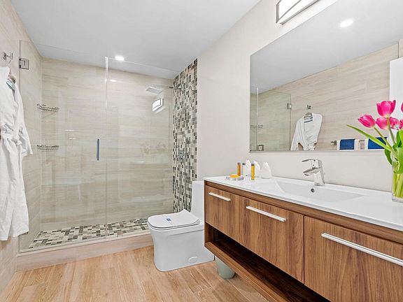 Experience the stunning 180 views of the ocean and islands from this exquisite apartment located just a minute's walk from the marina. The master bedroom features an en-suite bathroom and a king-size bed, ensuring a luxurious stay. Enjoy the convenience of really fast internet, two Smart TVs, and a fully equipped kitchen with brand new appliances, quartz countertops, and a full-sized washer and dryer. The apartment also offers free covered self-parking, access to a pool, hot tub, gym, and two squash courts. With 24-hour security and a front desk, you'll feel at home in this secure and welcoming environment. Remodeled in November 2021, this privately owned property at Arya Hotel in Coconut Grove offers breathtaking views of Biscayne Bay, the Dinner and West Islands, and the Dinner Key Marina. The spacious corner condo includes a queen-size sofa bed and a wrap-around terrace to admire the ocean, boats, and sunset. Elegantly furnished and fully equipped, the apartment features a new laminate floor, full-sized refrigerator, stove, microwave, dishwasher, washer and dryer, toaster, and coffee maker. The kitchen boasts a large quartz countertop, and the master bedroom offers stunning views, a king-size bed, and a walk-in closet stocked with plush robes. Free covered parking is available in the same building. The pool and outdoor hot tub on the 8th floor offer amazing views of the bay, with free towels provided. The fitness center features great views and squash courts, and there's a business center available. Room service and dry cleaning services are also available but not included in the price. Nestled in a quiet neighborhood with lush, shady trees, you'll find weekend farmers markets, parks, art galleries, spas, and great restaurants and bars on every corner. CocoWalk, remodeled in 2021, is just steps away with its shops, restaurants, and cinemas. The apartment is a short ride from Brickell, the financial heart of Miami and Latin America, and the tranquil beaches of Key Biscayne. Nearby attractions include the Miami Museum of Science, Vizcaya Museum, Perez Art Museum Miami, Children's Museum, Parrot Jungle Island, Miami Seaquarium, Miami Metro Zoo, Fairchild Tropical Gardens, Adrienne Arsht Center for the Performing Arts, South Beach, Coral Gables, and Key Biscayne. The apartment is ideal for executives staying close to Brickell or Coral Gables, parents visiting University of Miami students, commuters to the numerous hospitals, or those wishing to enjoy a relaxing weekend retreat by the ocean. The reception at the hotel can offer suggestions and information on all of the must-see attractions. The apartment offers a real high-speed internet connection and two Smart Samsung TVs with over 100 channels. There are separate controls for the A/C in the kitchen and bathroom, making it ideal for remote work-friendly stays.