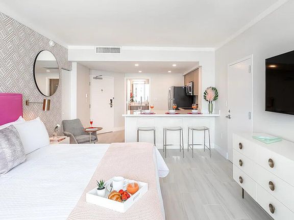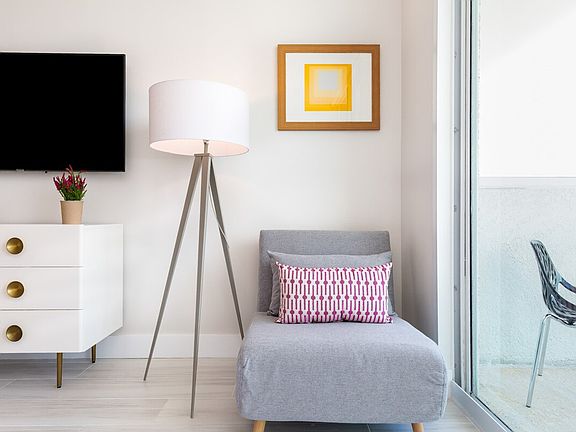 This recently renovated apartment in Coconut Grove offers stunning bay, marina, and ocean views. Enjoy the balcony with outdoor furniture and a fully equipped kitchen with modern appliances, including a Nespresso machine. The apartment features a king-size bed and a futon, providing a comfortable stay. Located in the Arya Hotel, it offers 24-hour security and a front desk, ensuring a safe and welcoming environment. Elegantly furnished and fully equipped, this apartment includes a toaster, coffee maker, and hairdryer. The kitchen boasts a large granite countertop, perfect for preparing meals. Relax in the living area with a smart TV and enjoy high-speed internet and satellite TV with 100 channels. Guests enjoy free self-parking, pool access, hot tub, gym, and squash courts. Room service and dry cleaning are available for an additional fee. Crib and high chair are available upon request. Nestled in a quiet neighborhood, yet steps away from Cocowalk with its shops, restaurants, and cinemas, this apartment is ideally located. A short ride takes you to Brickell, the financial heart of Miami, and other attractions like the Miami Museum of Science, Vizcaya Museum, and South Beach. Guests have full access to the condo and amenities, including the pool and outdoor hot tub on the 8th floor with amazing bay views. The fitness center is located on the top PH floor. Smoking and parties are not allowed, and penalties may apply for violations.