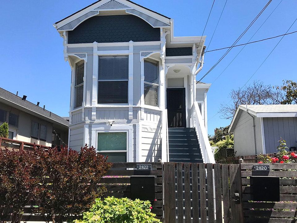 This renovated two-bedroom, one-bathroom unit is the lower unit of a Victorian duplex. It's located near Safeway and minutes away from West Oakland Bart and Emeryville shops. The kitchen has a stainless steel fridge, stove, microwave, and dishwasher. The bathroom has a shower/tub combo and tile throughout. The unit has central heating, vinyl plank flooring, and blinds. There is a security gate and an on-site coin-op laundry room. Cats and small dogs are okay with an additional $500 pet deposit per pet with a maximum of 2. Owner pays for water, garbage, sewer, and gardening services.
