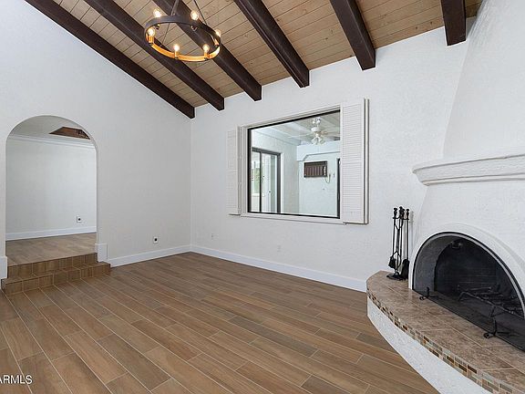 Entryway opens to Great room with Vaulted Ceiling, Wood Beams, expansive window with White Shutters and Beehive Fireplace with Granite Hearth. Upgraded flooring, granite in baths with decorative mirrors. Convenient location that is close to dining & shopping.