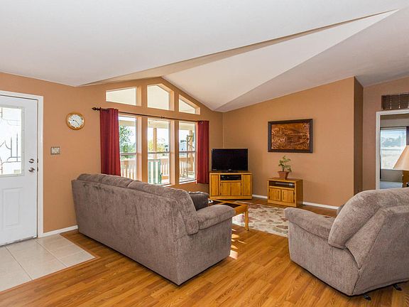 Great country living with panoramic views! Enjoy the peacefulness as you drink coffee from your front covered porch. This split floor plan, 4 bedroom 2 bath manufacture home is situated on 1 acre with an over sized detached 2 car garage and a workshop area. There is a wonderful in-law suite with its own kitchenette. Great well and fenced in backyard. Don't miss this one!