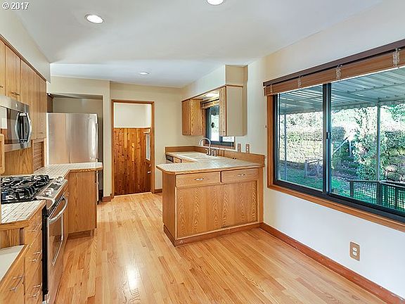 Character mid-century home with charm & mature landscaping, ideal for owners/investors. Split level, so great for large family, in-law suite, office, ADU uses. Upper level 3 BR/2 BA w/ on-suite master. Lower level 2 BR/1BA, own entrance. Previous month rents-upper $2145, lower $1,445. Freshly painted, 2 fireplaces, 2 kitchens, refinished hardwood floors, updated stainless appliances, newer windows, yard. Close-in area, near Rocky Butte.
