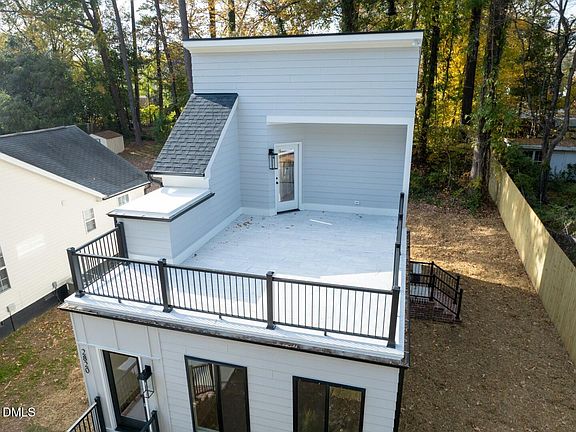 OFFER HAS BEEN ACCEPTED, WAITING ON SIGNATURES. Just ten minutes from the heart of downtown Durham and Historic Tobacco Row, this modern custom residence makes a statement with its sophisticated exterior blending brick, fiber cement cement siding. Inside, the modern open floorplan connects the family room with the chef's kitchen with countertop bar stool seating alongside a dining space. The main floor boasts a primary suite with dual vanities and a large walk-in shower, a guest powder room, and a practical drop Zone at the side entrance. Hardwood stairs lead to the upper level's additional bedrooms and full bath. Outdoor living is completed by a fabulous tiled rooftop deck offering spectacular elevated views perfect for relaxation and entertaining.