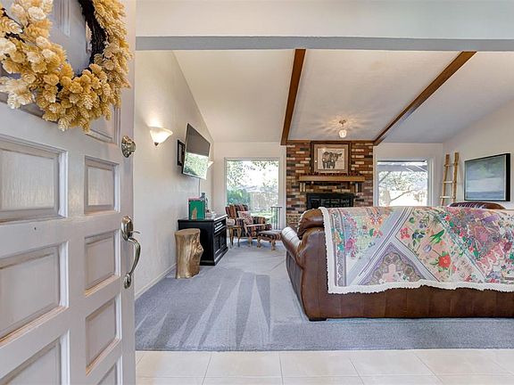 We’ve got a gem in the coveted Trails Addition! This stunning 3-bedroom, 2-bathroom, two story home offers a harmonious blend of comfort, style, and convenience. From the moment you arrive, you’ll be captivated by the charm of the mature trees that provide shade and serenity to the property, the backyard is a wonderful retreat as well. Step inside to discover a thoughtfully designed layout with a chic and modern aesthetic. The heart of the home is the spacious living room, featuring vaulted ceilings, large windows that fill the space with natural light, and a real wood-burning fireplace – perfect for cozy evenings with loved ones. The open and airy atmosphere sets the tone for relaxed living and entertaining. The kitchen is a delight, offering ample counter space, sleek cabinetry, and a seamless flow into the two dining areas. Whether hosting a formal dinner or enjoying a casual breakfast, this home accommodates every occasion with ease. The primary bedroom is filled with natural light, and a wonderful view of the backyard. The additional bedrooms are generously sized, making them ideal for family, guests, or a home office. With two well-appointed bathrooms, mornings are sure to be stress-free. One standout feature of this home is its enchanting outdoor living space. The back patio boasts a charming pergola, creating a perfect spot for outdoor dining, relaxation, or entertaining. The fenced yard offers privacy, while the underground storm shelter provides peace of mind. French doors lead from the interior to the backyard, seamlessly blending indoor and outdoor living. The lush greenery of the mature trees adds to the tranquility and beauty of the outdoor area. For practicality and convenience, the home includes a two-car garage, offering ample storage and parking space. The location is unbeatable, with close proximity to major highways and local amenities, ensuring that everything you need is just a short drive away. We can’t wait for you to see it in person!