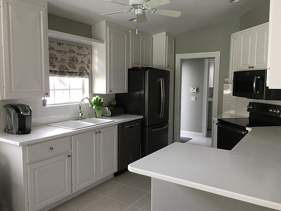 A year-round or winter get-away, this low-maintenance, fully updated home is perfect for relaxing and entertaining. With no houses in front or behind and a quiet cul-de-sac, come home to peaceful surroundings. Home is newly painted and has all new slate gray appliances. Sliding doors open onto a screened porch that extends to a lanai covering a private pool. Two master suites located at opposite ends of the house provide family privacy and convenience for guests. Other features include large laundry room with utility sink and lots of storage; hurricane shutters that easily pull closed in minutes; new wood-look tile in both bedrooms; 18-inch white, grout-sealed tile in living areas; central vacuum system; new Lennox HVAC system, and walk-in closets in both bedrooms.
