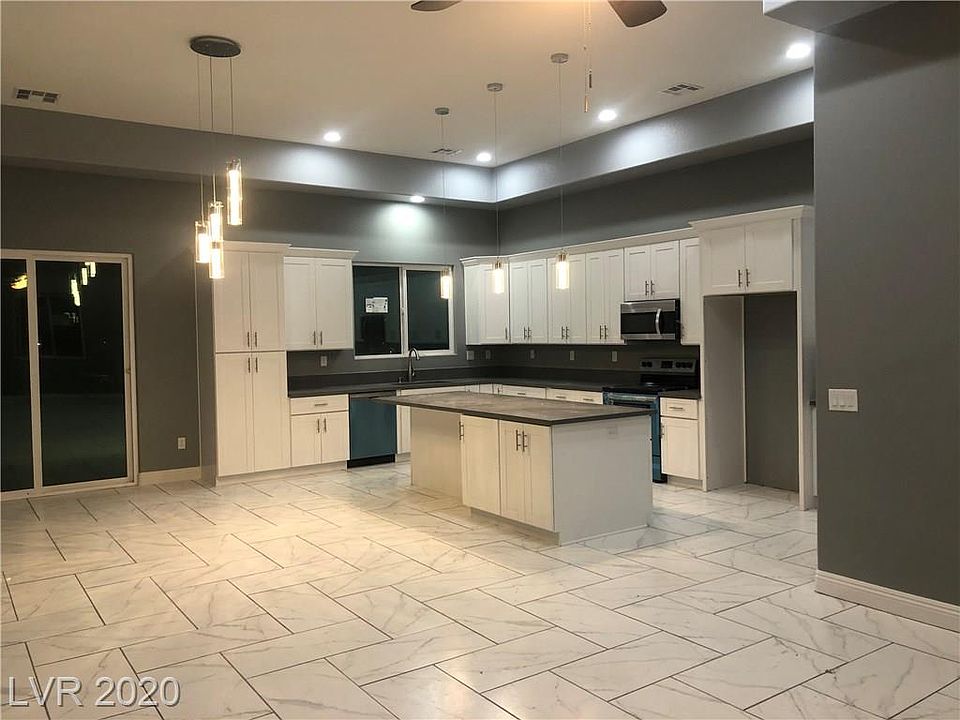 Gorgeous brand new home!! Modern look with a country feel. Large open floorplan. Living room with long electric cozy fireplace. Massive kitchen with lots of cabinets, walk in pantry and huge island. Laundry room with wash sink and cabinets. Master bedroom has double doors to back patio and master bath has one of the biggest walk in showers I've seen. 2nd bath has double sinks. Lots of recessed lighting throughout. Also features a 3 car finished garage with a half bath. Enjoy your morning coffee while you look at Mt Charleston. Then enjoy your evenings on the large covered patio with ceiling fans. Front landscaping to be finished by 10/2 along with front vinyl fence. This one is ready to call home!!