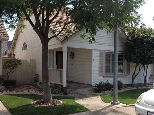 Adorable & affordable 2 bedroom, 2 full bathroom beauty, nestled in the Cobblestone gated community. This charmer is light, bright, freshly painted and move-in ready. The spacious Great room presents a volume ceiling and displays a cozy fireplace with a gorgeous mantle. Kitchen displays window box for plants, black/Stainless appliances, plus handy pantry. Master bedroom comes complete a ladder to access cozy loft. Imagine this delightful space as a mini library or reading area. Master bath has dual sinks and tub with shower. French doors open to backyard patio with pavers for outdoor dining area, lighting for evenings and open to possibilities for landscaping or gardening.