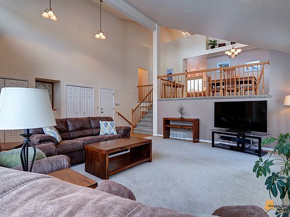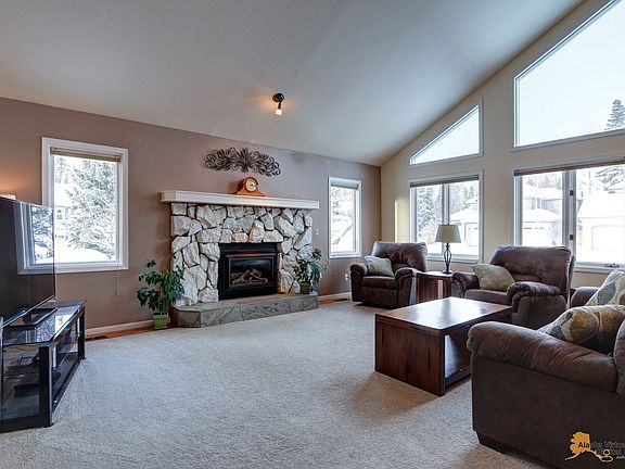 Turnagain View home featuring open plan living & dining areas offers a spacious ambiance. Award yourself with a large master suite outfitted w a WIC, fireplace & bathroom ensuite so lavish, you might mistake it for a spa. 3 additional bedrooms on lower level w laundry, another bath & family room. Garage fits an F150 crew cab. Enjoy the shaded backyard or walk to Rabbit Creek park down the street!