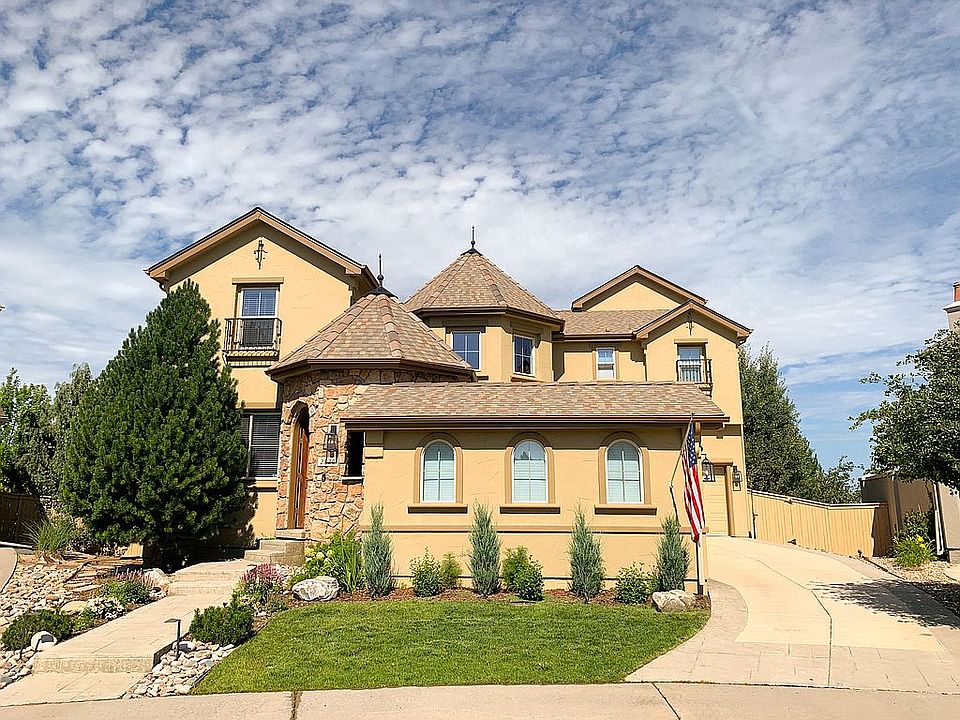 Tastefully Updated Joyce 2 Story with Finished Basement, Expansive Mountain Views & Tuscan Architectural Touches Throughout! Stamped Concrete Walkway w/ Alcove & 4th Car Garage, Gourmet Kitchen with Calacatta Lago Quartz Counters & Island, Stainless Steel Appliances including GE Profile Double Oven, Kitchen Aid Gas Cooktop and French Door Refrigerator. Subway Tile Marble Backsplash, Under-mount Sink w/ Kraus New Age Bronze Faucet. Spacious Cherry Cabinetry w/ Built-In Pantry & Brush Nickel Pulls. Custom Modern Lighting, Cherry Hardwood Floors. New Carpet Upstairs with Hardwood Staircase Runner. Custom Shiplap Feature Wall & Cabinetry in Family Room, New Rustic Mantle, Crown Molding, Plantation Shutters, New Paint, Wrought Iron Spindles on Staircase, Main Floor Office/ Guest Bedroom, Brush Nickel Modern Ceiling Fans, Jack & Jill Bathroom, Master Bedroom Suite features a 3rd Level Retreat w/ Expansive Mountain & City Views, Master Bath is a 5 Piece w/ 2 Walk In Closets. UPSTAIRS LAUNDRY, 3 Smart Ecobee Thermostats w/ 2 Zones upstairs and One Zone for main floor and basement. Finished Walkout Basement Features Guest Ensuite Bedroom w/ 3/4 Bathroom. Wet bar with Mini Fridge and Microwave Included. Backyard Features Stamped Concrete Patio with Plenty of Room for Entertaining, Trex Deck w/ views. 2 Furnaces, 2 ACs Provide Great Comfort! Master Planned Highlands Ranch Community with 4 Recreation Centers, Trails, Parks, Open Space, Backcountry Hiking and Mountain Biking, Phenomenal Schools, HRCA Activities & More!