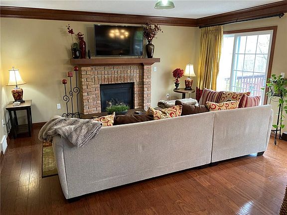Backdrop of trees behind home. Living room opens to kitchen. Beautiful cove moulding in much of home. Don't miss the master bdr picture with the gorgeous moulding! 2 sinks in master. Master WIC has a sitting area. Finished basement with door to back yard. Firepit area. Storage shed. Exclude hottub.