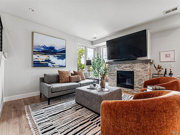 One of the most spacious and livable townhomes on the market, this 3 story home is the perfect size and space for anyone! Within walking distance to all of the JeffPark favorites: Jefferson Park Pub, 2914 Coffee, Sexy Pizza and Briar Common. And it's a few minutes from LoHi, downtown and Sloan's Lake. Feel the energy on Bronco Sundays or enjoy one of the bike paths leading to the city or lake. The rooftop is one of the largest and tallest in the complex, providing for panoramic views of downtown, Mile High Stadium and the mountains. It also makes for higher ceilings within the home that bring in natural light throughout the day. The kitchen is sleek and modern, with quartz counters, a large island and stainless steel appliances. Open concept kitchen, dining and living room another outdoor deck space are ideal for entertaining. There is a guest powder room on the main level. Two bedrooms upstairs (one could be a nice office space or nursery), and two bathrooms. The best part is NO HOA!!! Seller has refinished hardwood floors, replaced all the carpet, new paint throughout. It is a fresh home that feels brand new. See for yourself how special this home is.