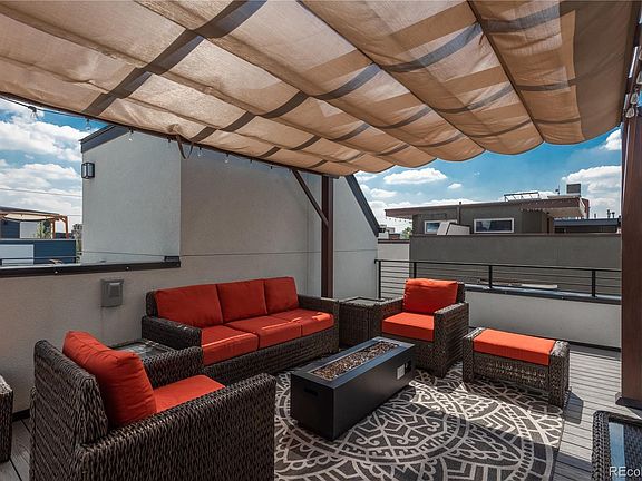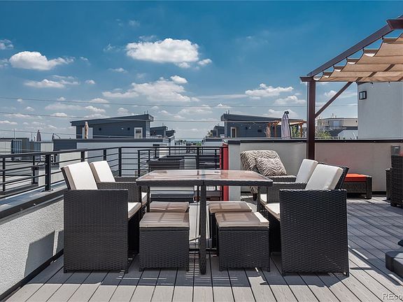 Summer Vibes are flowing at one of the Best Rooftop Patios in Jefferson Park! City views twinkling at night create such ambiance for this urban dwellers hidden gem. Beautifully appointed and surprisingly SPACIOUS townhome offering 2,072 finished square feet with a uniquely wide floorplan, 3rd bedroom option + elevator-A MUST SEE! Incredible main floor living space with plenty of room to entertain multiple guests centered around the kitchen as a focal point with adjoining dining and living room spaces. High-end finishes throughout to include: KitchenAid stainless steel appliances, Livia custom cabinetry, Quartz countertops, White Oak hardwood floors, Fireplace, Marble and Porcelain tiled bathrooms + a 670 sq ft Rooftop Patio with Firepit, Retractable Pergola, TV, Dining Area and KitchenAid BBQ that will make your jaw drop!!! Super FUN! One of the most thoughtful floorplans which lives so much larger then the photos depict! The bonus is a rare main level office with closet which could be a 3rd bedroom if needed separate from the upper level Primary Master Suite and 2nd bedroom / bath! Oversized 2 car garage (24' deep) with epoxy coated floors, 9' ft ceiling height and ample storage. The attention to detail and pride of ownership is evident at every turn! The quality of the build and finish level stands out. Minutes to LoHi, Downtown Denver, Sloans Lake and 1 block away from Jefferson Park's retail and neighborhood restaurants!