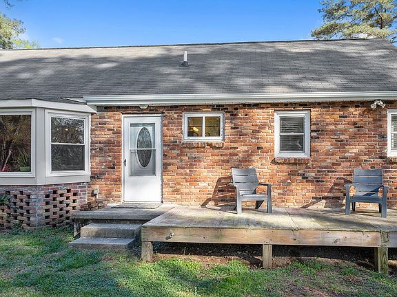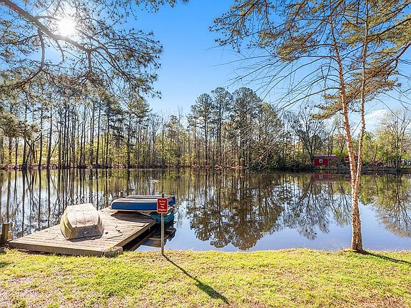 Fall in love with this 3 bedroom, 2 bathroom home that sits on over an acre of land and boasts breathtaking views of a serene community pond! Enjoy your very own private dock, perfect for fishing or taking in the picturesque surroundings. Inside, natural light pours in. The well-appointed kitchen features ample counter space, a breakfast bar, and plenty of cabinets for storage. Generously sized bedrooms. This property includes a detached two-car garage with power and water, perfect for a home workshop! Located just 10 minutes to Downtown Raleigh and immediate access to 40 and 440.