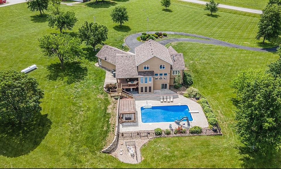 WELCOME TO YOUR OWN PRIVATE OASIS on 4.38 acres (per county records)! This 1.5 story home has been METICULOUSLY MAINTAINED and is ready for a new family to call home! SO MANY UPDATES including refinished wood floors, new carpet, updated showers, new interior paint & more! The CHEF'S KITCHEN will WOW you w/GORGEOUS CUSTOM CABINETRY, stainless appliances, granite counter tops, ISLAND & 2 PANTRIES w/ pull out drawers. SPACIOUS DINING AREA for family dinners. MAIN LEVEL PRIMARY SUITE creates a PRIVATE SPACE to unwind. Main level laundry, 1/2 bath & DEDICATED OFFICE! Upper level features 3 secondary bedrooms & bath with a new shower. FINISHED WALK OUT LL is the beginning of your ENTERTAINING SPACE offering a rec room, wet bar, bonus room, 5th bedroom & bath! There is SO MUCH TO SEE in the backyard! 20x40 SALTWATER POOL, hot tub & pergola! The 22x16 UPDATED COVERED DECK overlooks the pool and has an OUTDOOR KITCHEN w/blt in grill, fridge & granite tops!! GREAT LOCATION, LAWSON SCHOOLS! HURRY!!