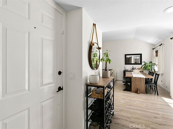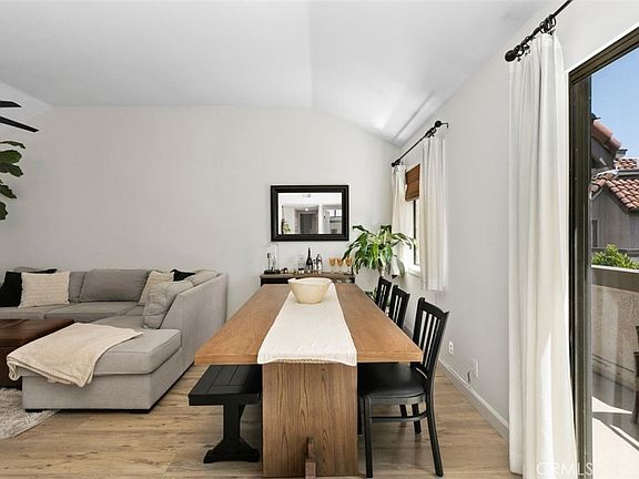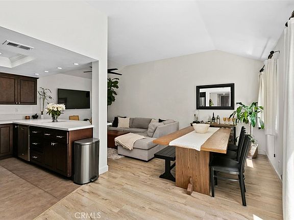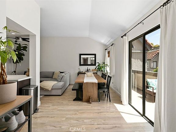 Welcome to your new home in the highly sought-after Villa Mira community! This beautifully upgraded, upper unit home offers two bedrooms and one bathroom, bringing the perfect blend of comfort and style. As you step inside, you'll be greeted by an inviting living area, complete with vaulted ceilings and laminate wood flooring that flows throughout the entire home. The open concept living and dining space creates a seamless area that's perfect for entertaining guests or relaxing with loved ones. A gorgeous kitchen boasts ample cabinet space, stunning quartz countertops, and stainless-steel appliances, making meal preparation a breeze. You'll love the convenience of having a private deck, perfect for enjoying your morning coffee or hosting a summer BBQ with friends and family. Both bedrooms are spacious and offer plenty of natural light, providing a serene and welcoming atmosphere. The bathroom is conveniently located between the bedrooms and features a sleek, modern design. Villa Mira is a tranquil and quiet place to call home, with access to 2 sparkling community pools, a relaxing spa, and a recently renovated clubhouse for entertaining. The location is unbeatable and just a stone's throw to major freeways, shops, malls, restaurants, and parks. This home is a true gem, offering a relaxing and comfortable living experience that you won't want to miss!