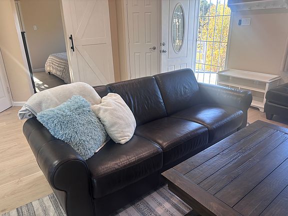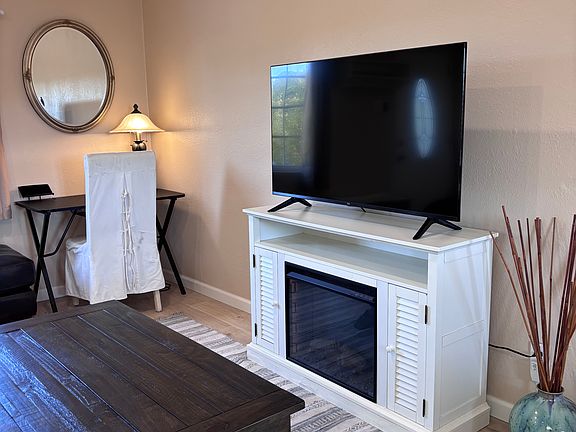 Turnkey newly remodeled guest house Just bring your clothes and your pet! Turnkey & newly remodeled guest house that has mountain and tree views from a fully furnished 650 sq ft cottage nestled in secret Hidden Meadows. Fully fenced back yard and screened porch great for pets. Vaulted ceilings, dedicated work station, ceiling fans, wall A/C, electric fireplace, smart tv, washer/dryer, floor heater, all kitchenette items, filtered water, barbecue, and countless other amenities. Unwind on the screened in patio, then sink into the king bed or convert the queen pullout sofa perfect for couples or friends. Sleeps comfortably 4. Private entry and Less then a mile from 2 deli's, golf course, and fire station. Utilities included. Dogs allowed but must meet with owner for approval and $750 non-refundable deposit. Must purchase renters insurance. No smoking inside unit. 2 parking spaces available in the driveway.