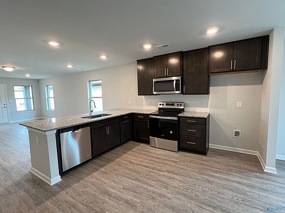 Move In Ready!!! The R1400 plan- 3 bed, 2 bath and 2 car garage! Our Lifestyle Triangle joins together the living room, dining, and kitchen to create an open concept. Kitchen features beautiful backsplash, granite countertops and finished w/stainless steel appliances! Secluded master bedroom w/ en suite bath, double vanity and large master closet. Brick exterior, optional covered back patio on a beautiful lot. Come check out the Charleston community which features great lots, convenient access to Highway 72 and just 15 minutes away from Huntsville! 100% FINANCING. BUILDER PAYS ALL MORTGAGE RELATED CLOSING COST WITH SILVERTON MORTGAGE.
