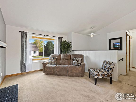 Wonderful SW Loveland home, with all bedrooms conforming. Beautiful xeriscaped backyard comes ready to entertain with a built in movie screen, firepit and ample seating. A brand new deck and ingenious dog run, lets the animals have fun in their space, while you have fun in yours! The living room boasts vaulted ceilings, a wood burning fireplace and an open floor plan that makes this space great for groups or just getting cozy on a cold day. The entire home has been painted and is ready for it's new owners! Come and Take a look!