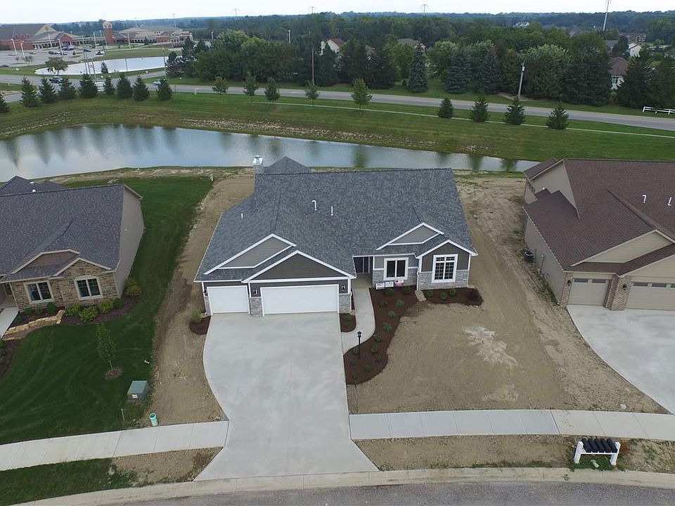 Beautiful new villa home SW under construction by Granite Ridge Builders. Outdoor living at its best. Covered rear porch offers a peaceful place to enjoy the pond, outdoor woodburning fireplace, built in benches and an additional 15 x 15 patio. This home offers 9' and 10' ceilings, many custom details and an open floorplan. The laundry room is one of a kind with cabinetry, a built-in desk, sink and 2 spacious closets. The kitchen offers custom Grabill cabinets with a center island and same height breakfast bar. The kitchen also has quartz countertops and a stainless steel gas range, dishwasher and microwave. Beautiful trim work with oversized baseboards and casing plus extra trimscaping details. The great room offers a corner gas fireplace with a manufactured stone surround. The master suite has a walk-in closet, double sink vanity and a stunning porcelain tile shower. This magnificent home is also Energy Star certified. Model home not for sale