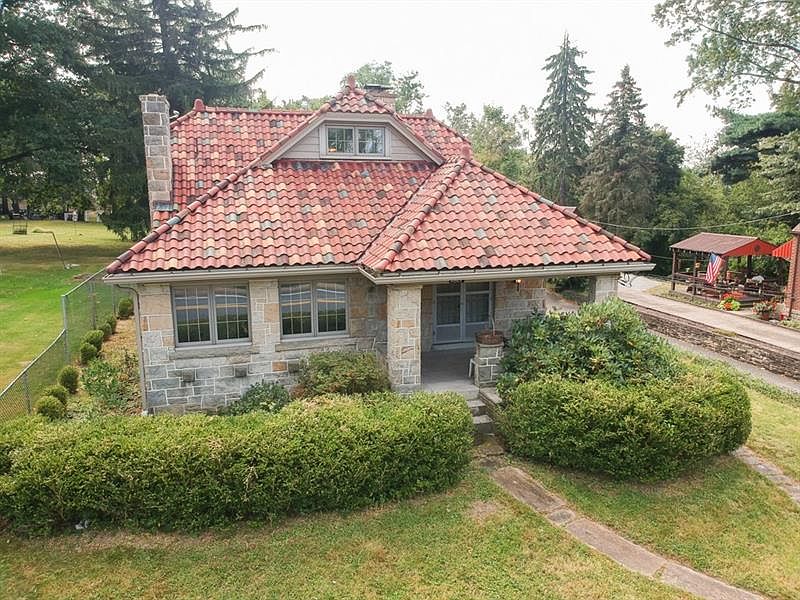 Rare classic gem in the heart of Bethel Park. This 1930s stone cape cod with Spanish tile roof is loaded with old world charm. Covered front porch invites you into the entry foyer. All original woodwork includes arched living room door, built in China closets, solid wood doors. Stone hearth fireplace in living room gives a warm cozy feeling. Large windows in every room bring in natural light and a panoramic view. The eat-in kitchen has been updated & features hardwood flooring. Superior location situated on almost an acre of private park like yard. Close to schools, parks, restaurants, shopping, and I-79.