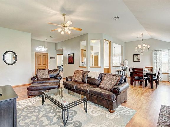 This home is so well put together. It offer 3 bedrooms, 2 full baths, 2 dining areas, large living with fireplace. Granite counters, pantry, lots of counter space with breakfast bar. Nice size bedrooms for 1700sf. Master bath with separate tub and shower, double sinks. Roof was replaced 3 yrs ago. The community offers swimming pool, basketball court, part and walking trails. Located on the west side of I-35.