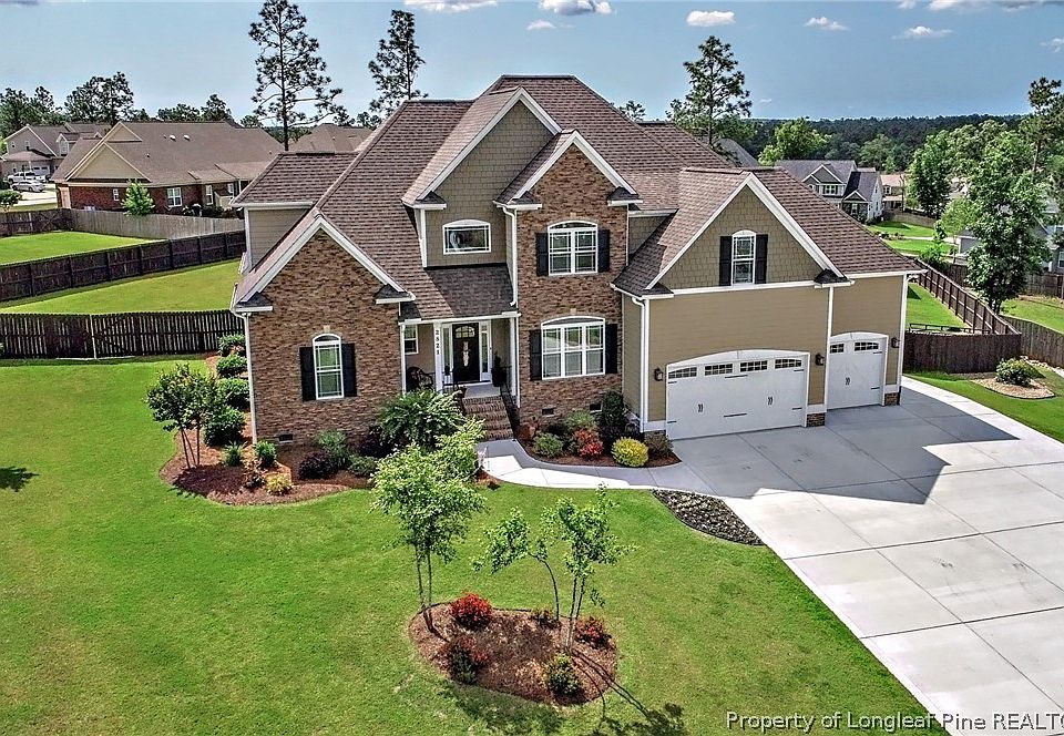Move-in ready 4 bedroom, 4.5 bath executive home located in Mariners Pointe! Home features a 3-car garage, fresh paint, new engineered hardwood floors, kitchen w/ double ovens and granite counters, master suite on main level, second level featuring 3 bedrooms, 3 bathrooms, and bonus room. Enjoy the cathedral ceilings, gas fireplace, and hardwood floors in the living area. Main level also features an office and formal dining. Back yard features detached building with electricity fire pit, and screened-in porch area, and additional patio. Home also features an irrigation system. Located in the highly wanted Jack Britt school district!