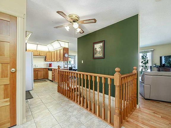 WELCOME to this lovely upgraded home with many features to enjoy as you enter a large ceramic tile foyer with a custom built in cabinet for your shoes and trinkets. We offer two bedrooms on the main with a full bath in between. The kitchen offers plenty of cupboards and working space plus a built in pantry. Fridge, stove, hoodfan have all been upgraded within a year. There is bar seating at the counter and a cozy dining/living area with access to the private deck. Downstairs we have a bright large rec area with a cozy gas fireplace feature with built in cabinets on each side. There is another full bath, a den plus a workshop /crafts room to tinker in! The utility room also comes with a small wash sink handy for the quick clean ups ~ UPGRADES include upstairs new doors, trims, hardwood flooring, upstairs closet doors, brand new pocket door from the primary bedroom into the bath room, high profile toilets, bidet, all windows/patio door have been replaced with exception of slider window off dining area. patio door, large basement bi-level windows, central vac with attachments, sink in workshop area, built in kitchen pantry plus overhead storage in garage complete with stair extension. **All basement carpet removed and upgraded to Gorgeous vinyl plank - Poly B plumbing has been replaced with new PEX. The Air Conditioning unit was recently installed along with a new power humidifier. The furnace has been inspected and new motherboard replaced. Missing Window blinds have been ordered and will be replaced prior to possession. This is a desirable friendly community where 50 plus can enjoy a more carefree lifestyle steps from the walking trails into Kin Canyon and perfectly located close to shopping and restaurants!