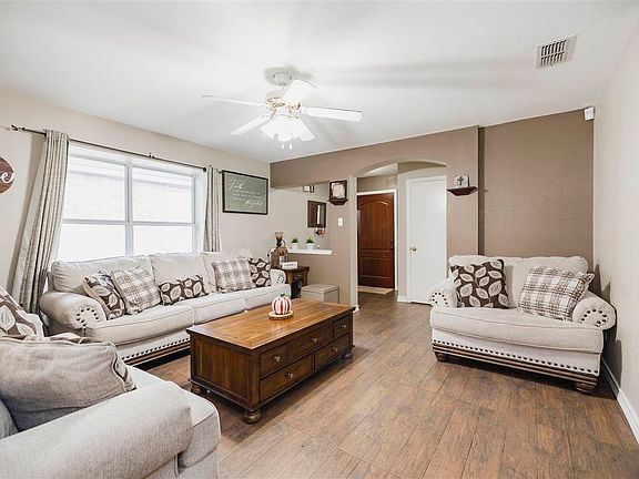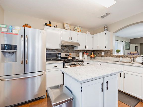 Charming home conveniently located to eateries, grocery store and shopping. Walk-in to a bright and airy indoors. The space flows seamlessly. Enjoy your favorite movie in the family room or cook up a tasty dinner in newly remodeled Kitchen with island, all white cabinetry. Relax & unwind in the primary suite. Fun & laughter are easy to enjoy in the privately fenced in backyard featuring a large covered patio w/ a ceiling fan & ample room for a larger gathering. It's a must see.