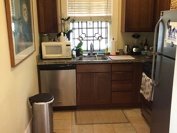 Wonderful first floor apartment with high ceilings, hardwood floors, tons of natural light and central air/heat. There is a living room and dining room, an efficient kitchen along with a bedroom with two closets and a bath with a shower. The apartment opens onto a wonderful lawn / patio space tucked in the middle of the block. There is a shared laundry area and bike storage also.